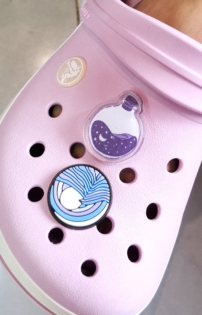 Acessórios para o crocs, estampa de poção e leite.