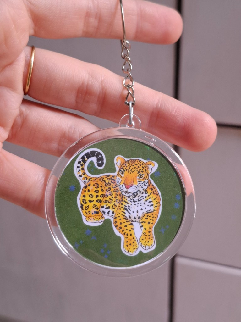 Chaveiros no tema dos animais do cerrado, onça e borboleta.