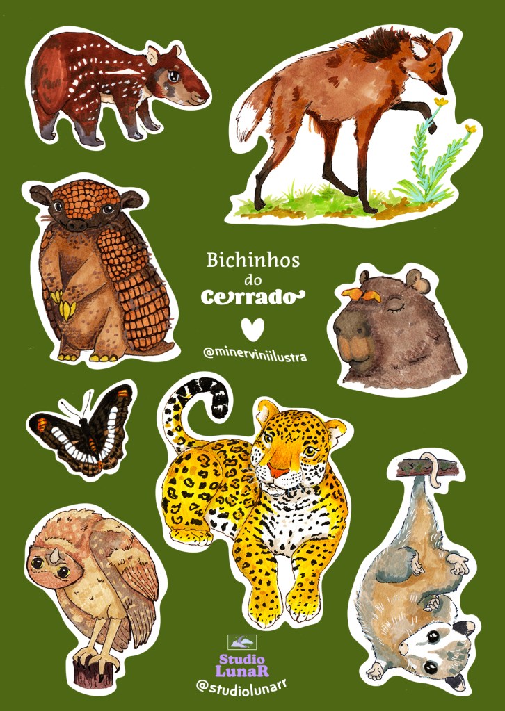 Prints tamanho a5 de animais do cerrado e outras ilustrações originais.