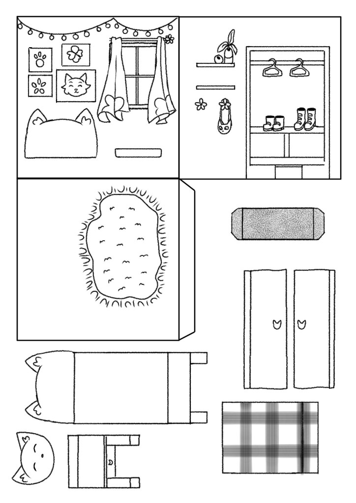 Casinha dos personagens Bolita e Cacau, para recortar e colar. Nas opções colorido e para pintar