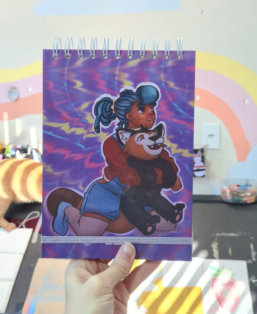 Cadernos com estampas originais e dos nossos personagens.